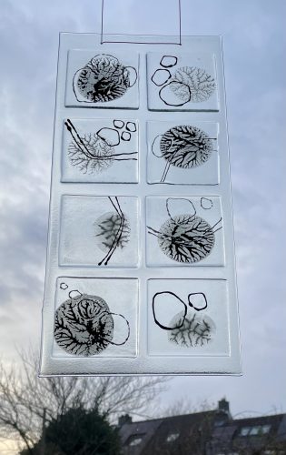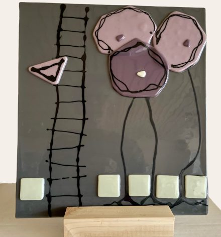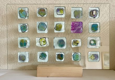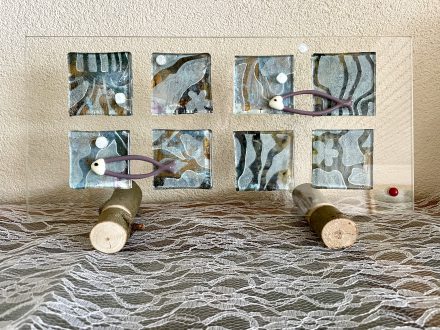 Glass art“Tegenhanger” Glass art paneel in standaard -