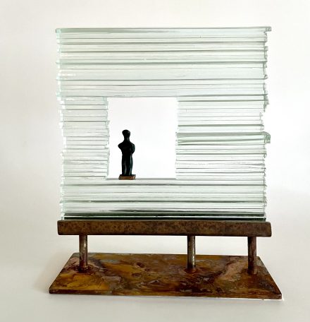 Glass art op stalen voet met figuurGlass art op stalen voet 20x25cm € 275 -
