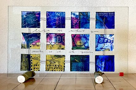GlassartAchterzijde van glaspaneel icm monoprints -