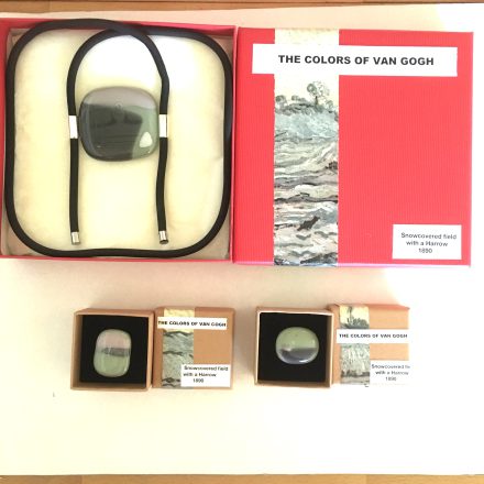 Glass art“ De Zaaier” van van Gogh Hanger plus oorstekers plus ring € 125 -