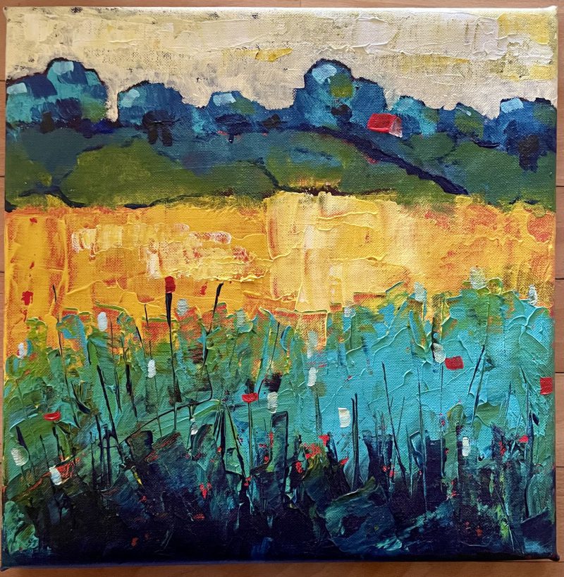 Berglandschap. Met palletmes geschilderd acryl