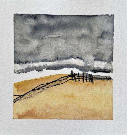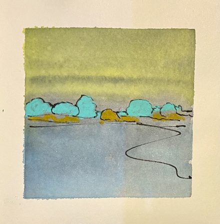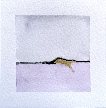 Abstract landschapjeLandschapje abstract Aquarel met goud 15x15cm €30 -